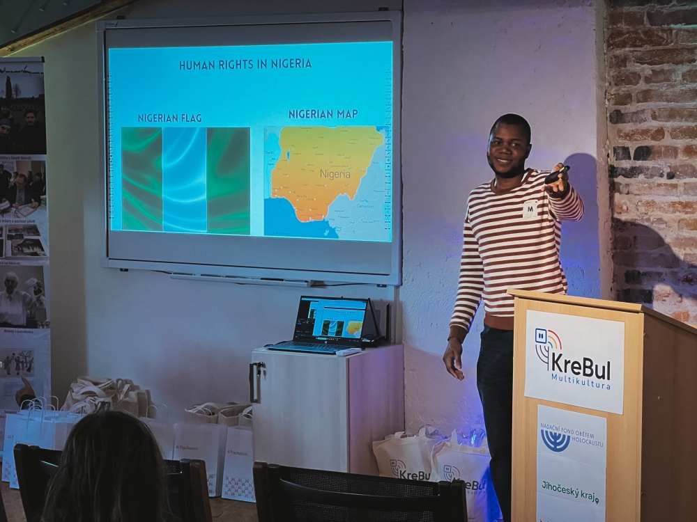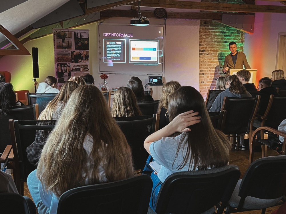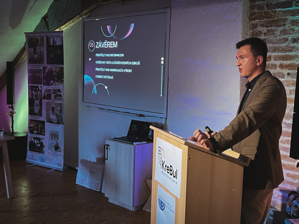 V poledním bloku vystoupil Jakub Imbera z pořádající organizace s příspěvkem „Dezinformace a nástroje AI v multikulturní době“, kde ukázal, jak umělá inteligence může být jak nástrojem manipulace, tak obranou proti ní.