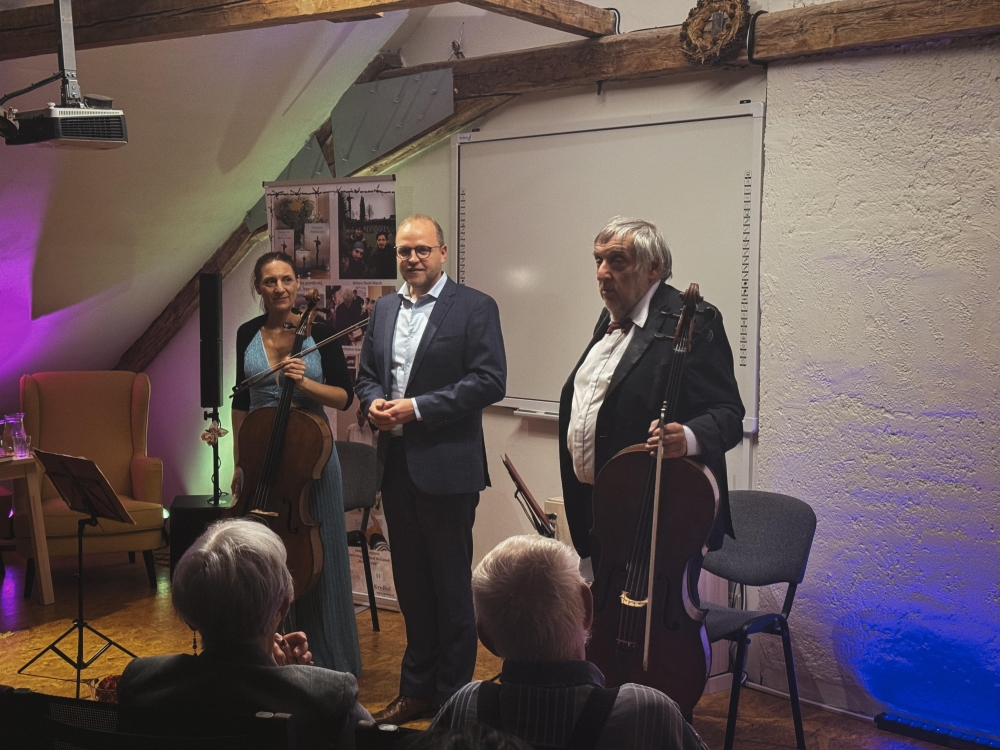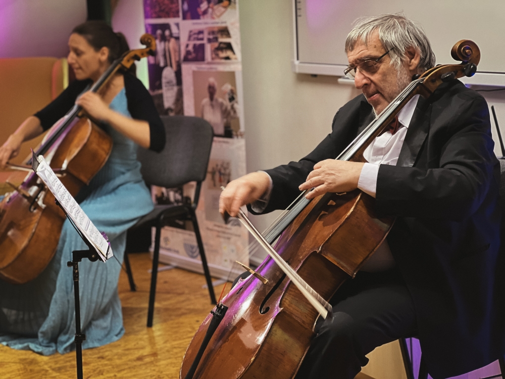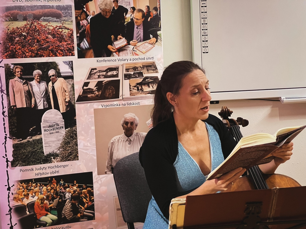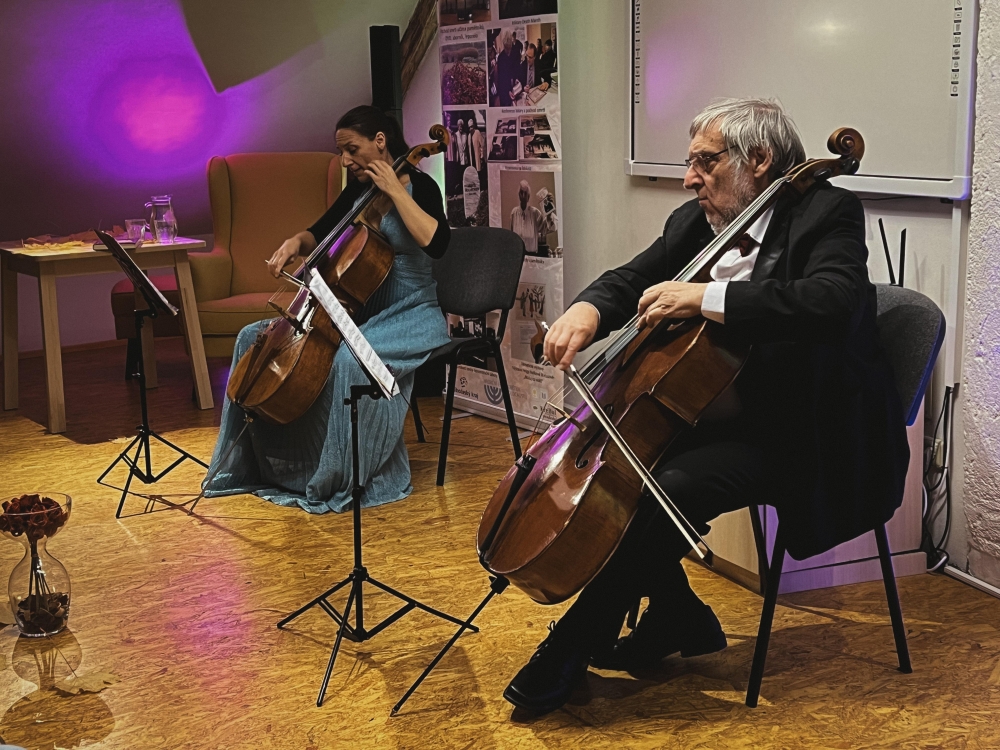 Večer pak patřil koncertu židovské hudby v podání Jiřího Hoška a Dominiky Weiss Hoškové (tedy syna a vnučky Helgy Weissové Hoškové), doplněnému o čtení z Deníku právě Helgy Hoškové Weissové, pamětnice holocaustu.